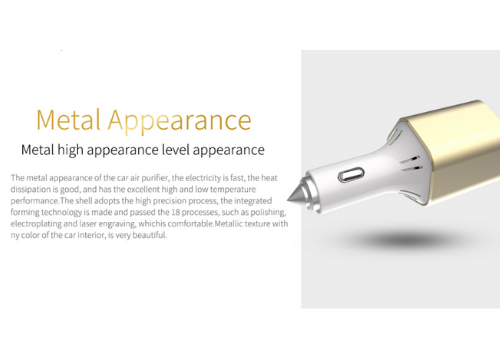 The Metal made Car Ionizer Car Air Purifier was thought of because it makes electricity 10x faster and the heat dissipation is even better. The excellent high low-temperature performance is incredible and the metal shell makes our product DURABLE and EFFECTIVE. The shell adopts the high precision process, the integrated forming technology is made and passes our 18 step process such as polishing, electroplating, and laser engraving, which makes it sleek. The metallic with any color of the car makes the car interior beautiful.