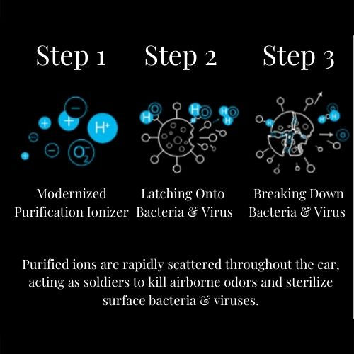 When you plug in the Proper Car Air Purifier the Plasma Ionizer automatically activates and a 3 step process occurs faster than a bolt of lightning, destroying bacteria and purifying the air you breathe for a cleaner, odorless, and safer cockpit experience. The Proper Car Air Purifier blocks orders fast and destroys them by releasing pure ionizers. Pure ionizers act as soldiers with the sole mission to search and destroy orders from pets, food, spill, and toddlers. Our system is designed to tear odors apart 10x faster than any other car air purifier on the market, making your commute as fresh and worry-free.